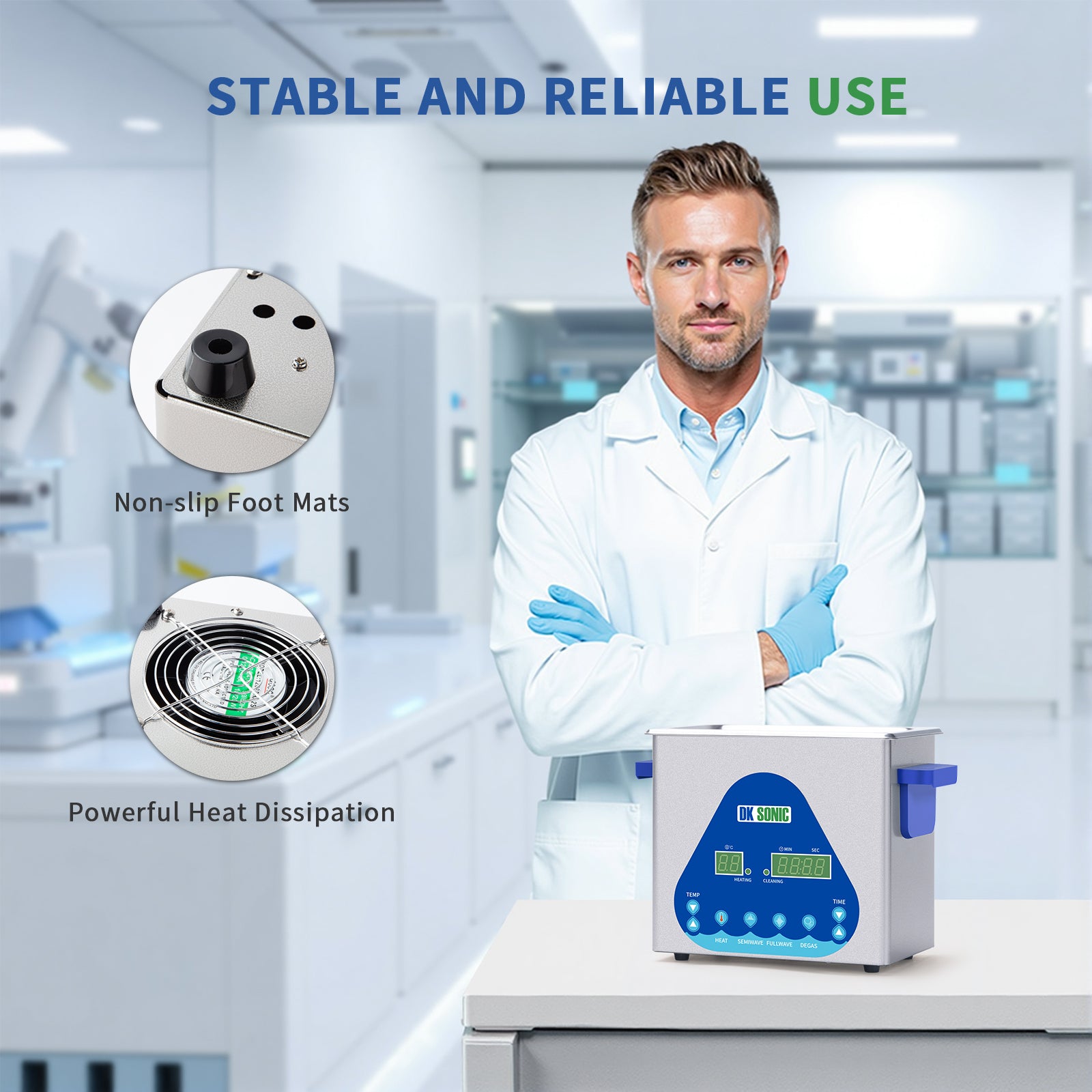 FULLWAVE mode(40KHz) for intensive rinse of blind holes or complicated surfaces; SEMIWAVE mode (semiwave based on 40KHz, i.e. 33KHz) for rough surface cleaning; DEGAS mode for removing ultrasonic fatigue so as to improve cleaning effect.
