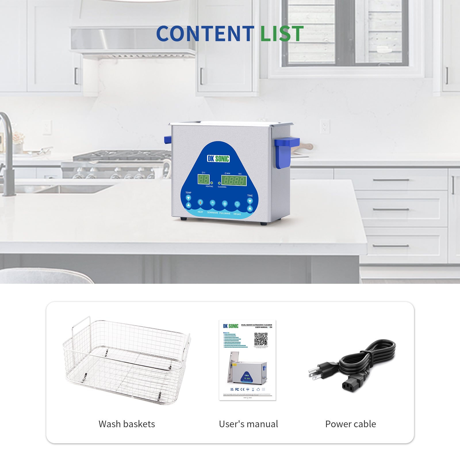 Time Settings of Digital Control within 99 Minutes and Temperature Settings of Digital Control within 80°C: precise time-settings and temperature-settings makes the device be freely set to work for a certain time and temperature based on the characters of stuffs to be cleaned.