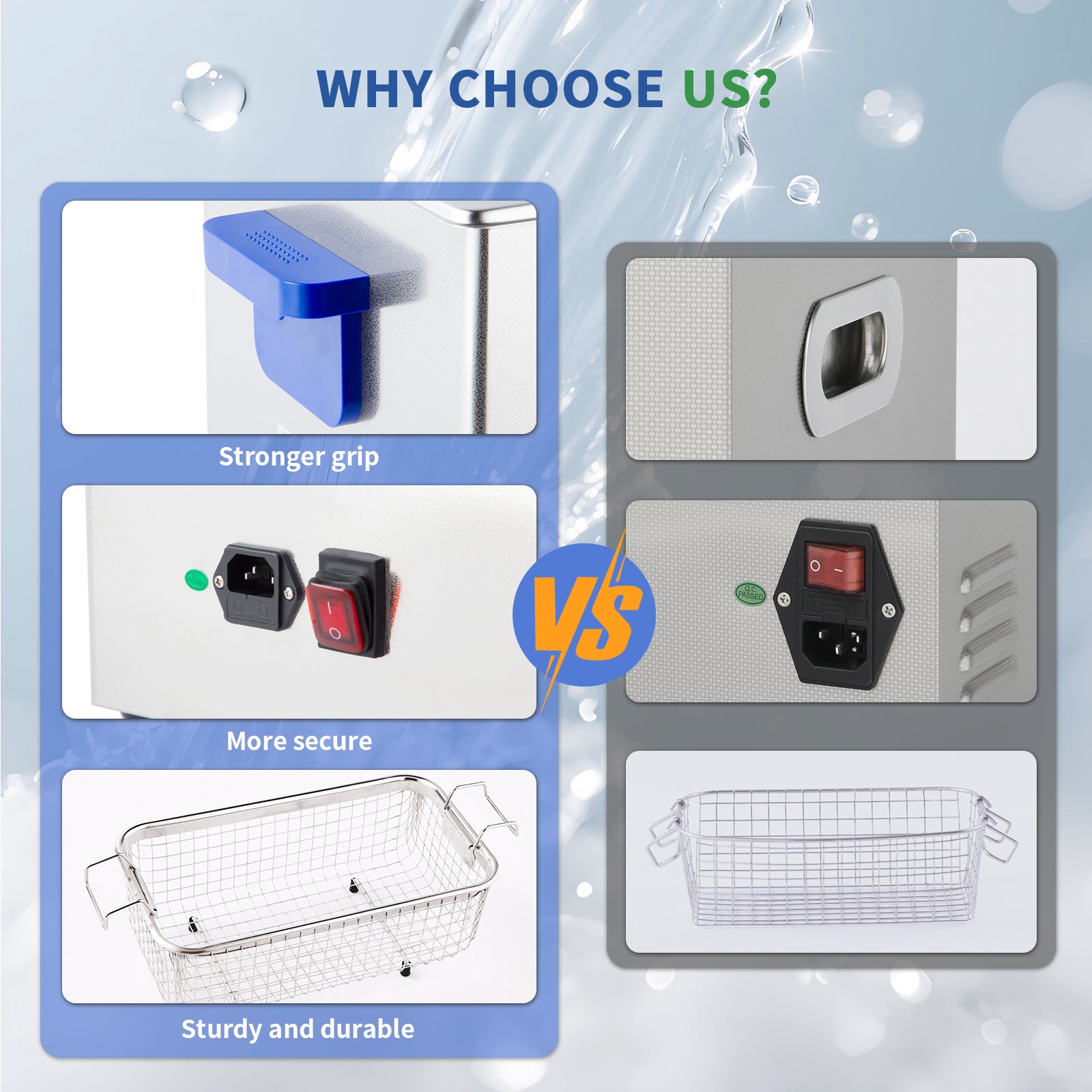 Heating can decrease the adhesive strength of oil and wax to stuffs to be cleaned, make the cleaning solution much easiler to create cavitation so as to increase the solution's cavitation level, and then enhance the cleaning effect. Note: the best cleaning temperature is 40~60℃, i.e. 104~140℉.