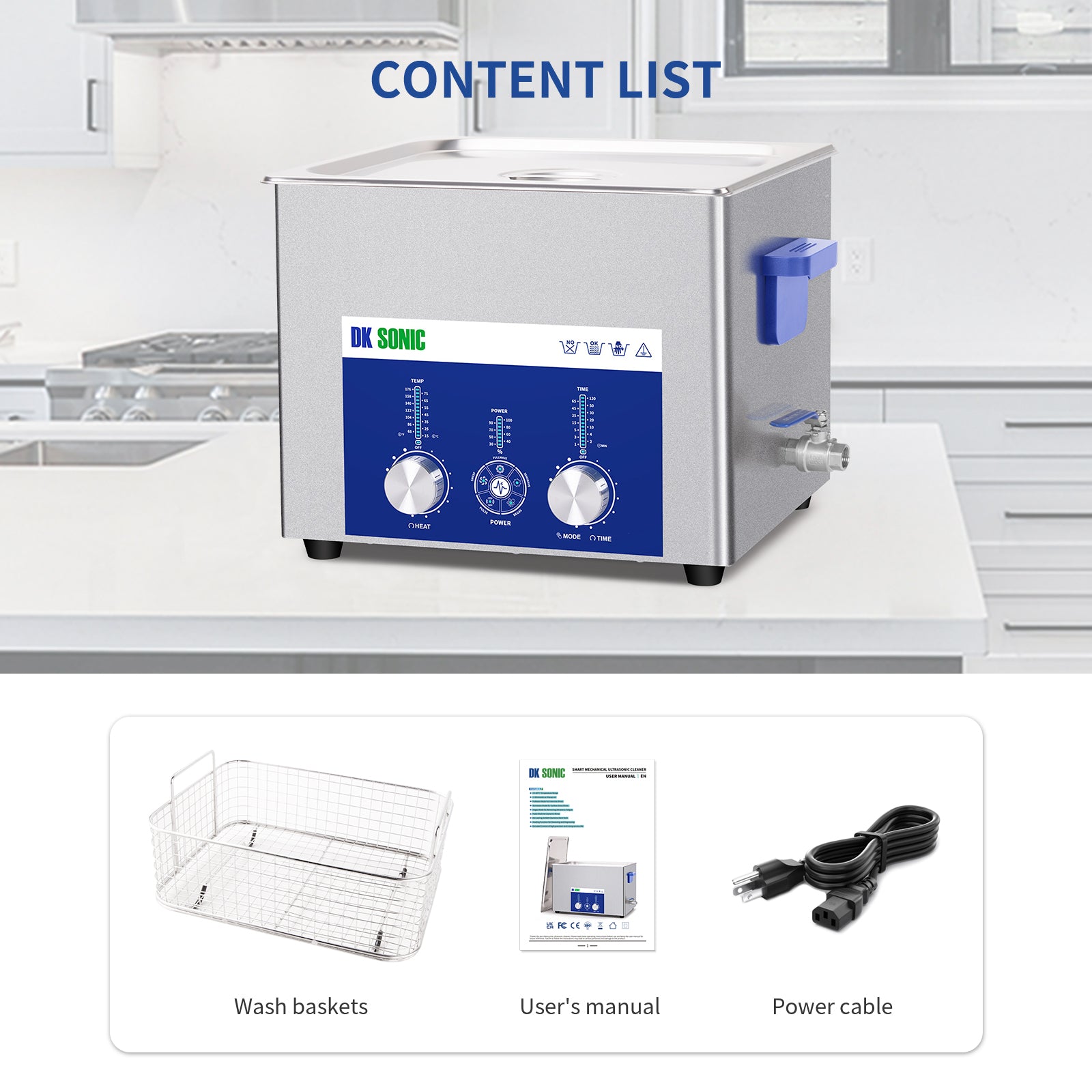 DK SONIC Nettoyeur ultrasonique 15L 360W, Nettoyeur ultrasonique pour carburateurs avec contrôle encodé ajustable et cinq modes pour le nettoyage des pièces, circuits imprimés et moteurs.