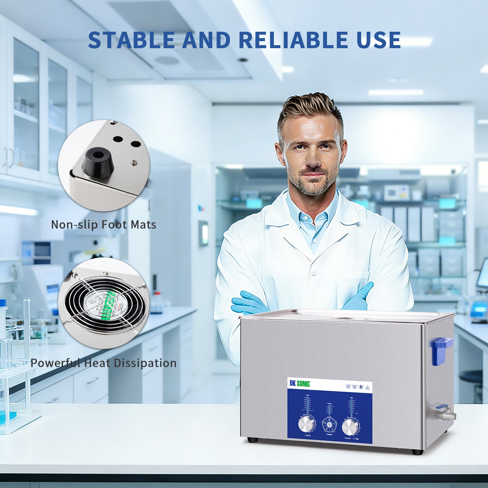 DK SONIC Nettoyeur ultrasonique 30L 600W, Nettoyeur ultrasonique pour carburateurs avec contrôle encodé ajustable et cinq modes pour le nettoyage de pièces, circuits imprimés, moteurs.
