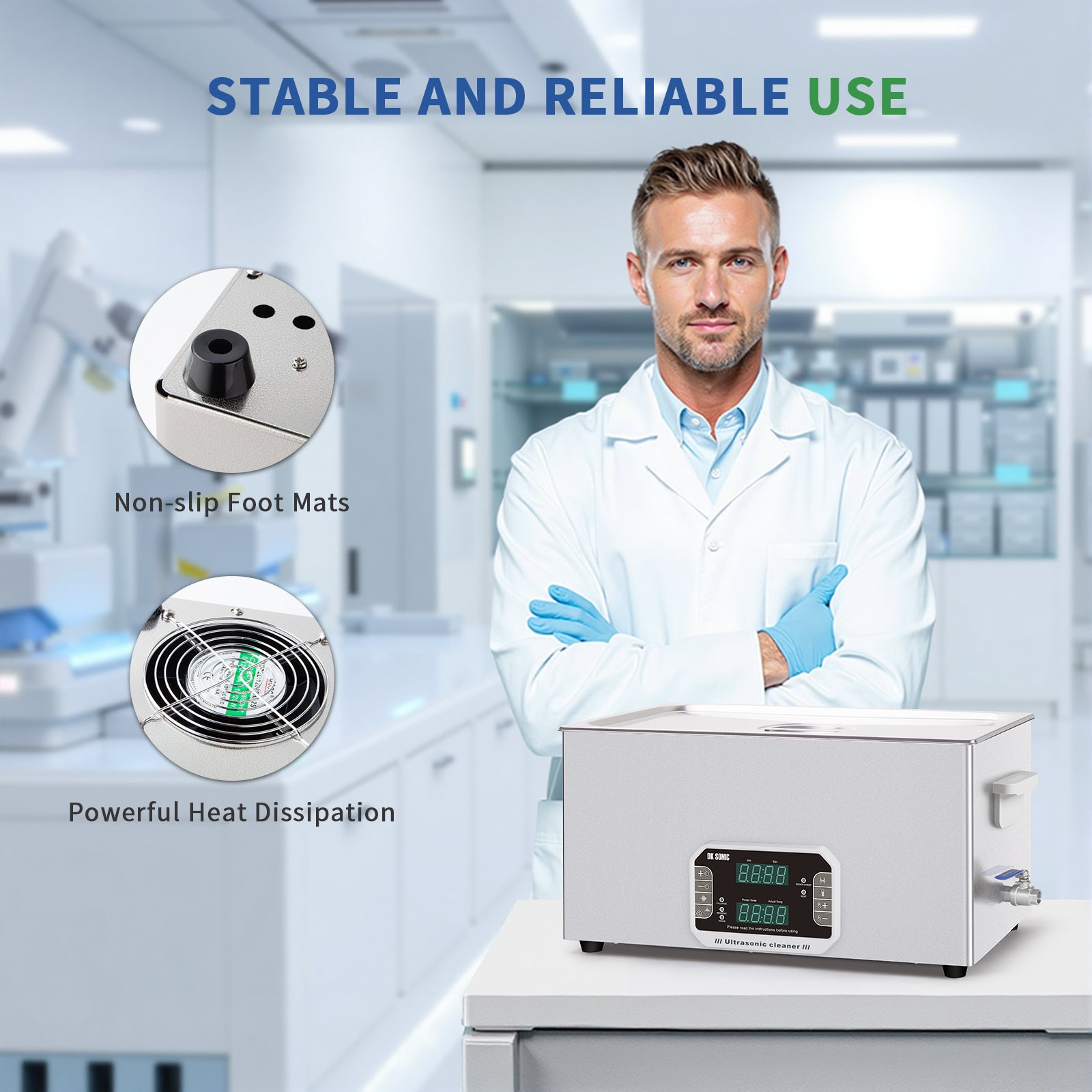 FULLWAVE mode(40KHz) for intensive rinse of blind holes or complicated surfaces; SEMIWAVE mode (semiwave based on 40KHz, i.e. 33KHz) for rough surface cleaning; DEGAS mode for removing ultrasonic fatigue so as to improve cleaning effect; PULSE mode for dynamic rinse of stubborn stains