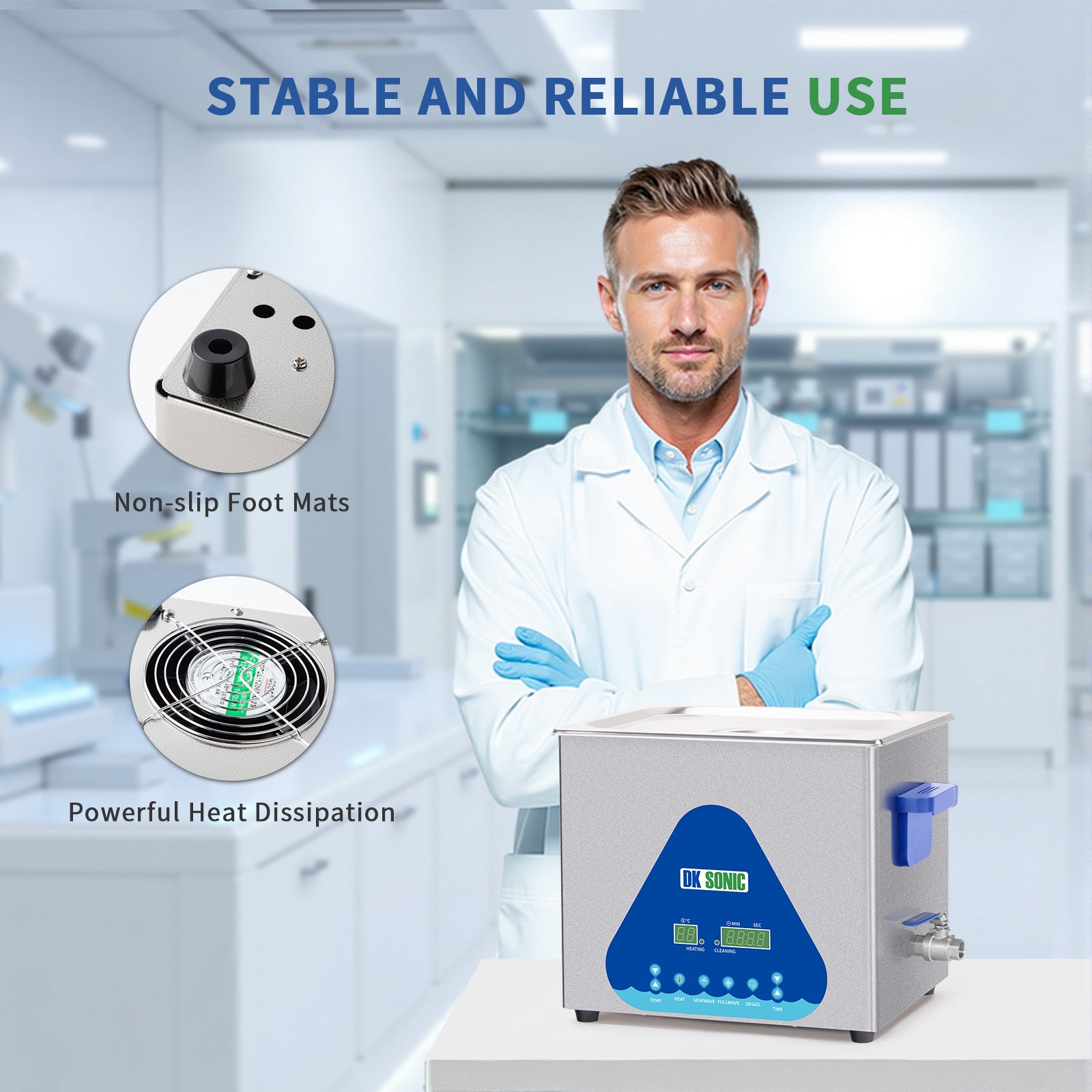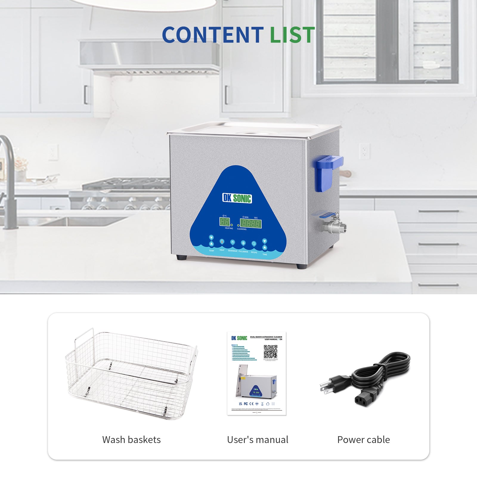 FULLWAVE mode(40KHz) for intensive rinse of blind holes or complicated surfaces; SEMIWAVE mode (semiwave based on 40KHz, i.e. 33KHz) for rough surface cleaning; DEGAS mode for removing ultrasonic fatigue so as to improve cleaning effect.